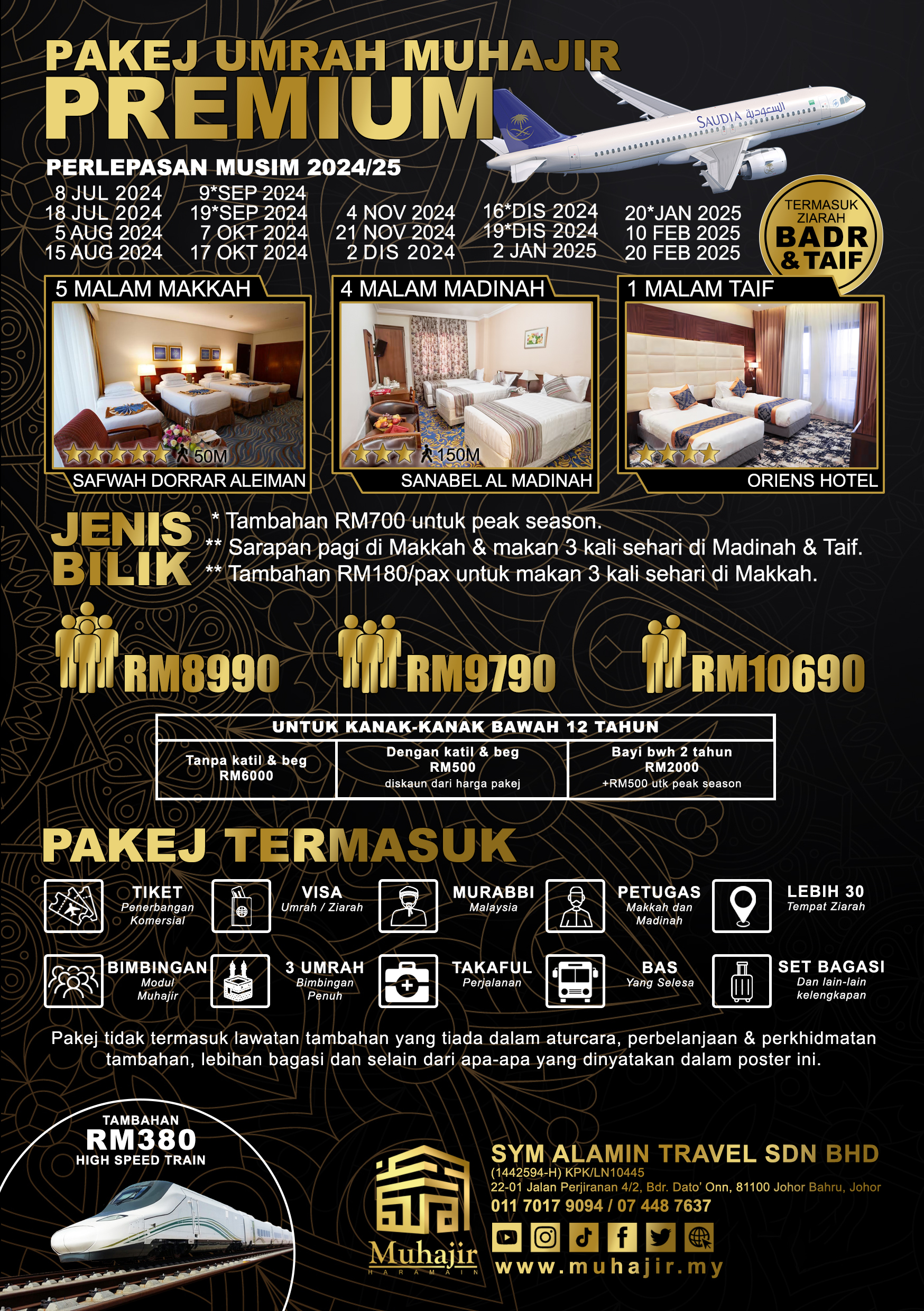 Selamat datang ke Muhajir, agensi perjalanan yang dipercayai. Kami menyediakan pelbagai perkhidmatan, terutamanya umrah dan ziarah, serta pelancongan dalam negara dan antarabangsa. Setiap perjalanan anda bersama kami dijamin lancar dan teratur.