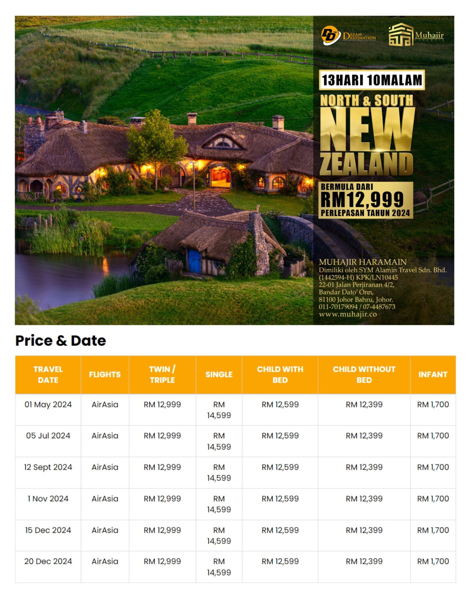 Travel throughout New Zealand and enjoy beautiful scenery. Visit iconic real life movie set used in Lord of the Ring and the Hobbit. Auckland – Cornwall Park – One Tree Hill – Matamata – Rotorua – Taupo – Hamilton – Christchurch – Tekapo – Twizel – Te Anau – Milford Sound – Queenstown – Mt Eden Volcano